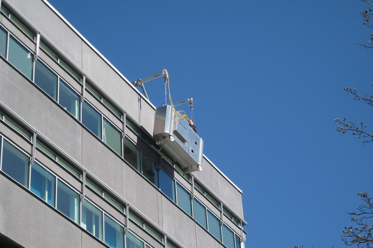 Den mest praktiska lösningen för installation, renovering, reparation av fasader eller eftermontering av panelhus. Det upphängda ställningen är också en arbetsyta och en godshiss. Arbetsnivån kan justeras exakt där den behövs. Byggmaterial och verktyg lagrade i bron är alltid till hands, så att den upphängda arbetsplattformen är också användbar som godshiss. Ställningen kan alltid justeras till det läge där det behövs.